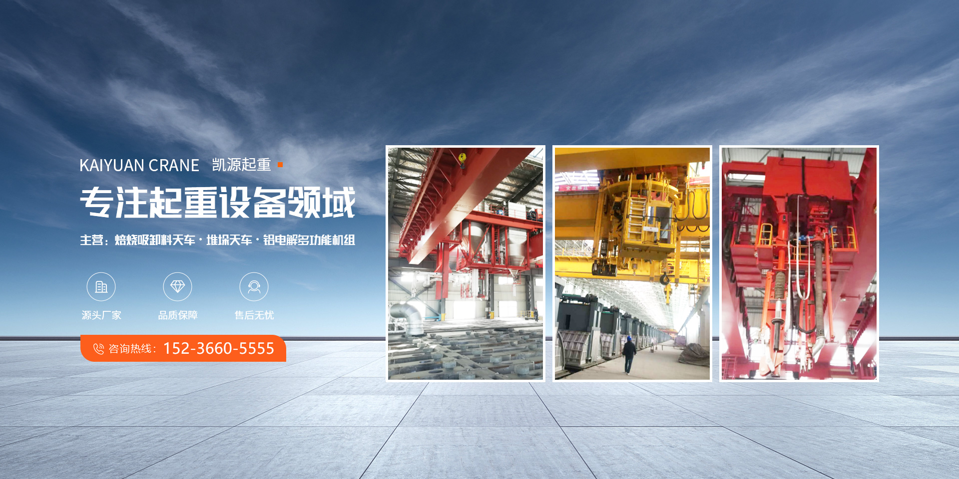 河南省凱源起重機械有限公司,地處河南省起重機械工業園長惱工業區。專業生產夾鉗天車,鋁電解多功能機組,碳素堆垛天車,焙燒吸卸料天車,焙燒多功能天車等起重機設備。